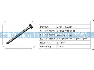 AZ9231340227 后制動(dòng)凸輪軸右